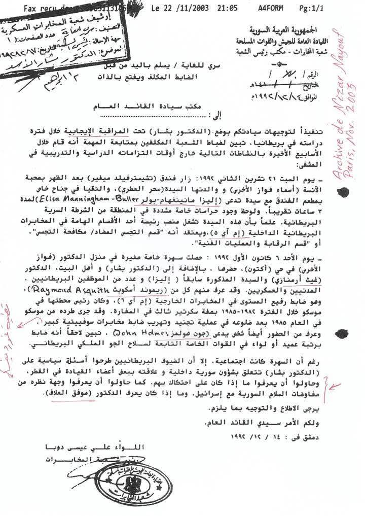 بخصوص الوثائق عن علاقة بشار الأسد وزوجته بالمخابرات البريطانية