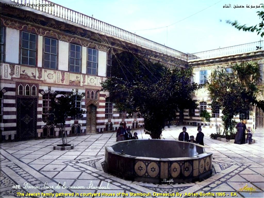 the Jewish family gathered in courtyard House of the Stambouli, Damascus 1895